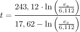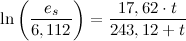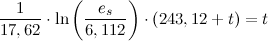bekannten Sättigungsdampfdruck die Temperatur berechnet